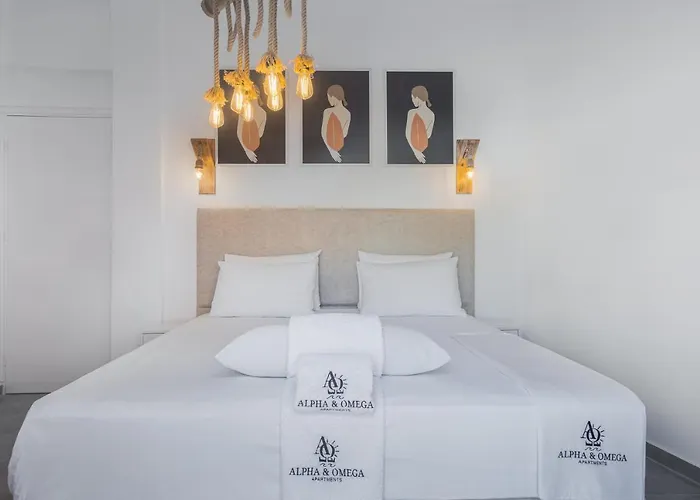 Agia Fotini Kucuk Kilisesi'a yakın konumda yer alan Alpha & Omega Daire dairesinde teras ve odalarda ücretsiz Wi-Fi vardır. Daire, 2 yatak odası, 1 banyo odası ve mutfaktan oluşur.